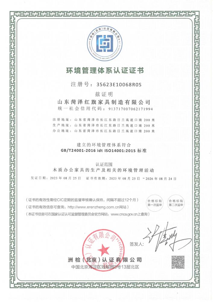 環(huán)境管理體系認(rèn)證證書